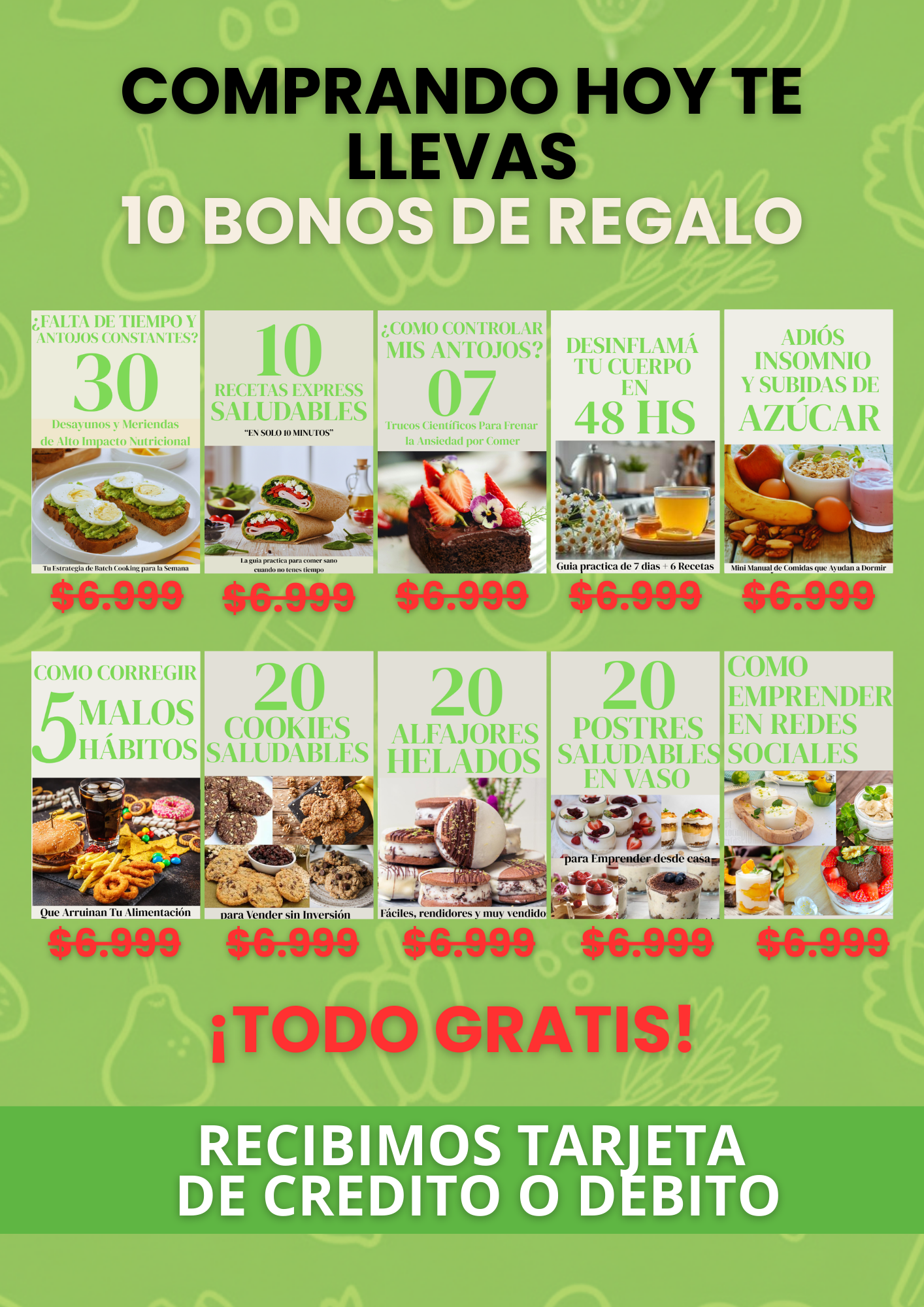 PACK "Alimentacion Saludable sin Estres: Guia Practica +500 Recetas" + 10 BONOS GRATIS
